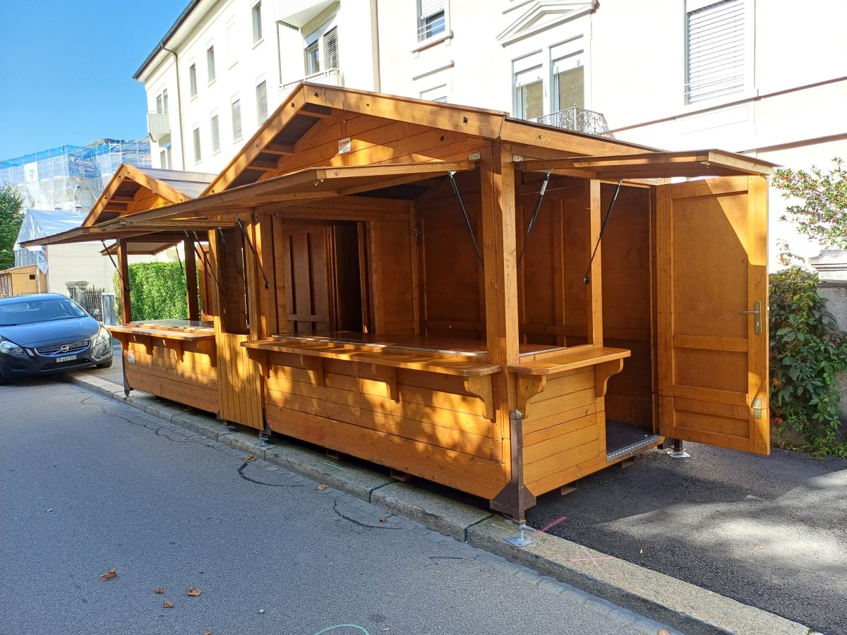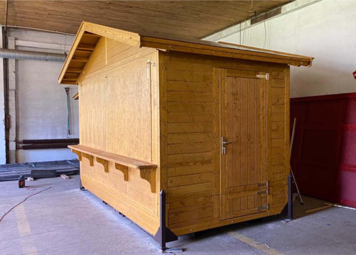 Idéal pour les manifestations festives, ce chalet en bois massif de 3x2m allie charme rustique et modularité : parfait pour les marchés de Noël, festivals ou installations temporaires.